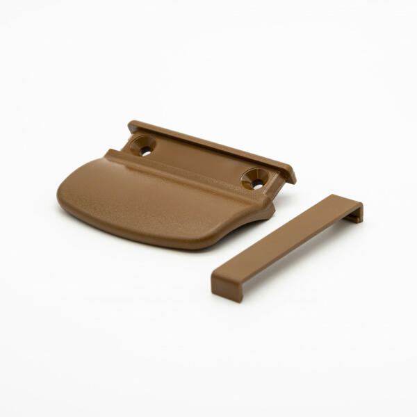 Erősített, kemény PVC, erkélyajtó fogantyú (behúzó fül), világosbarna színben.