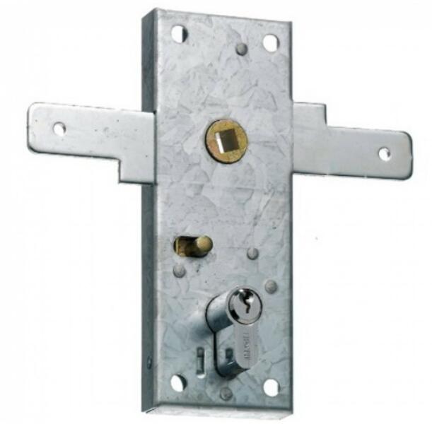 Kilincs működtetésű garázsajtó zár. Cilinder nélkül.