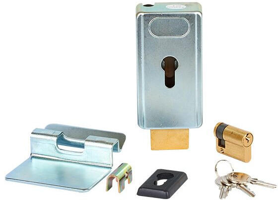Elektromos billenőzár szárnyas kapukhoz, függőleges szerelésű horganyzott fém ház, 12Vdc/3A, zárbetét, 3db kulcs, 120x66x35mm